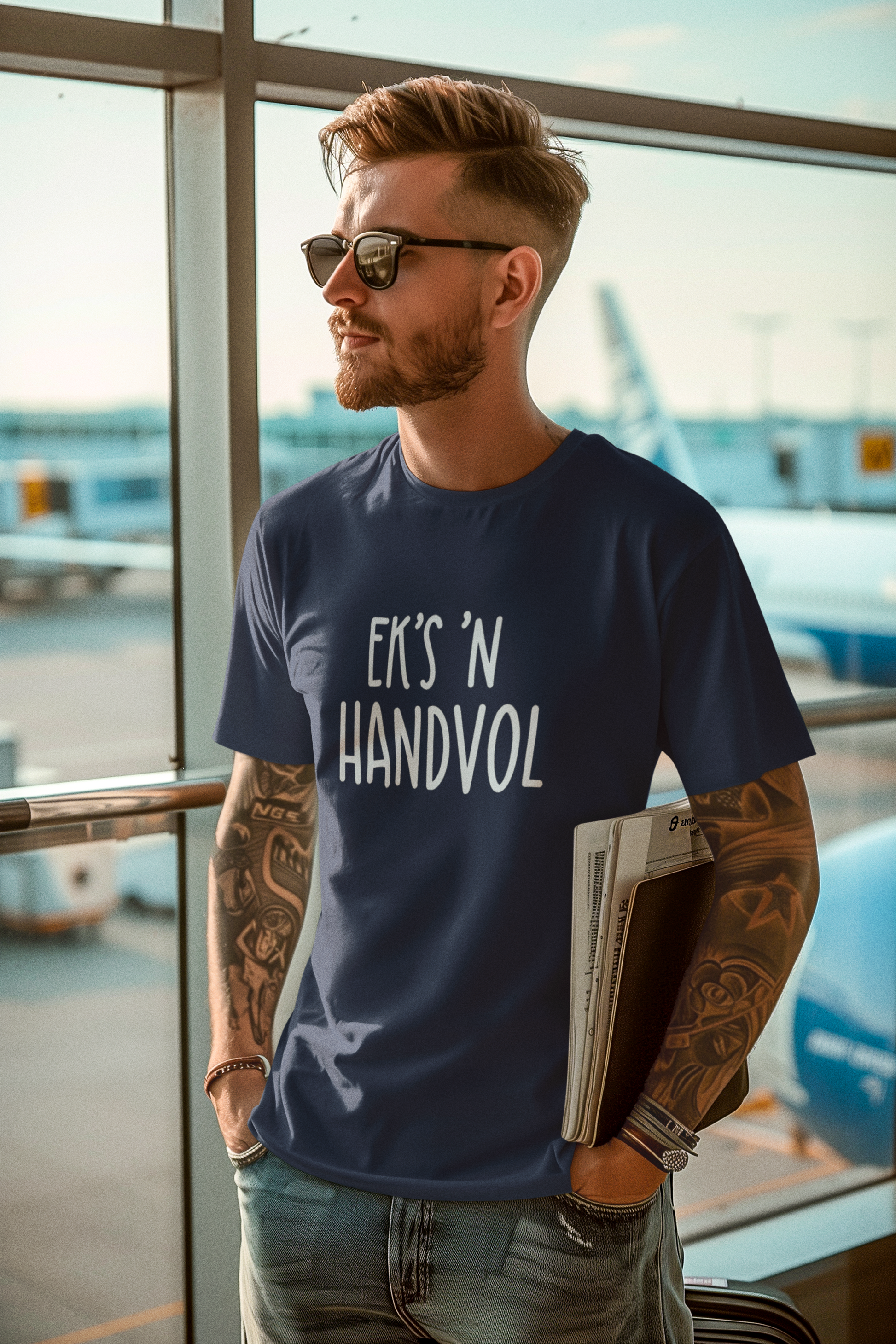 Embrace your unique personality with the Duwweltjie® "Ek's 'n handvol" Men's T-Shirt. Perfect for the confident and spirited man, this shirt proudly displays the phrase "Ek's 'n handvol" (I'm a handful). Crafted from premium, soft fabric, it offers unmatched comfort and durability. Whether you’re making a statement on a night out or keeping it casual, this t-shirt adds a touch of fun to your wardrobe. Stand out and let everyone know you're unapologetically yourself with this bold tee from Duwweltjie®.