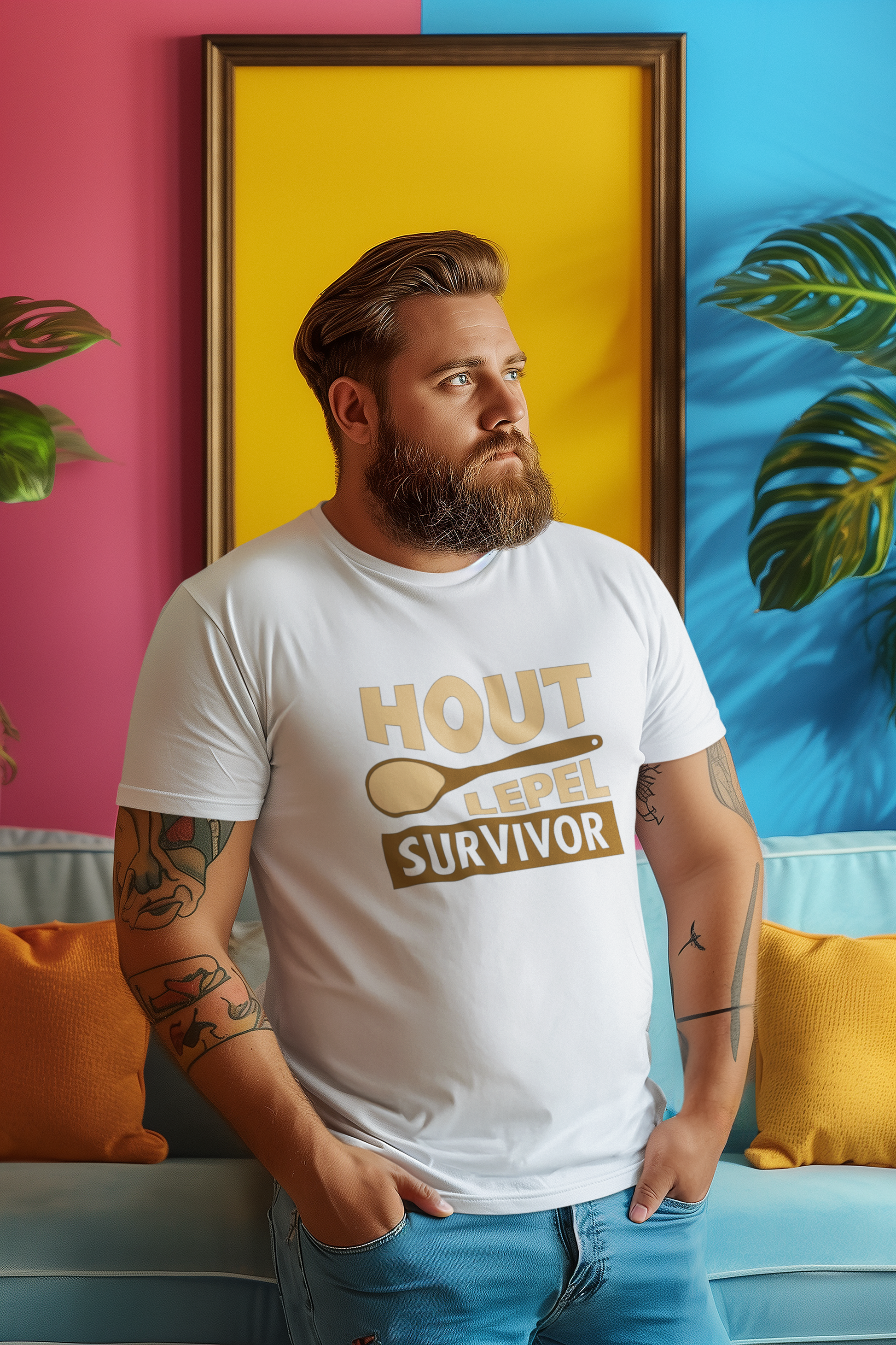 Celebrate your resilience with the Duwweltjie® "Hout Lepel Survivor" Men's T-Shirt. This stylish tee features a bold statement that proudly declares your endurance and strength, with a humorous nod to surviving life's challenges. Made from high-quality, soft cotton, it offers ultimate comfort and durability for everyday wear. Whether you've weathered the storms or just appreciate a good laugh, this t-shirt is perfect for those who wear their experiences with pride. Stand out and show off your survivor spirit with this unique and witty design from Duwweltjie®.