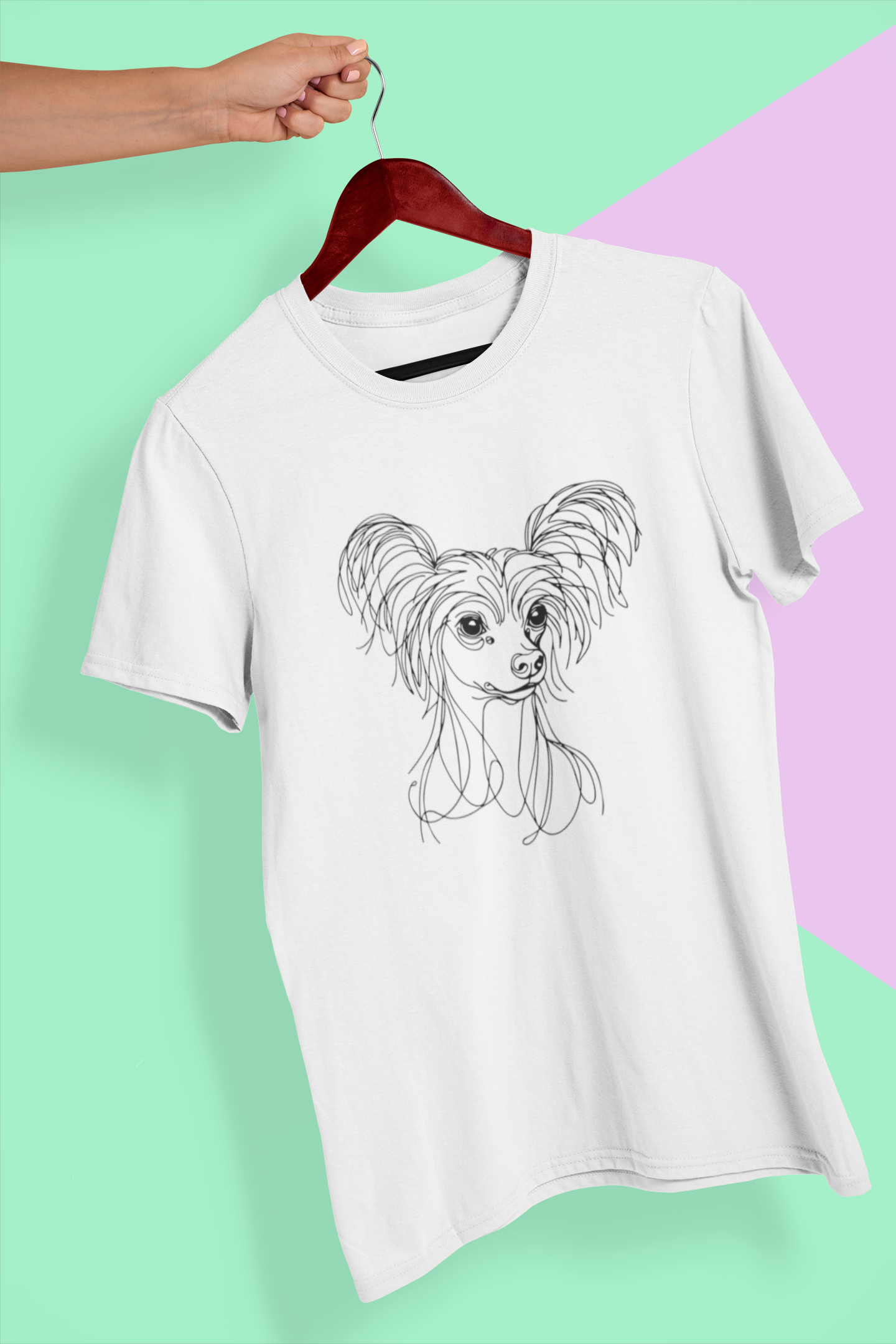 Embrace the elegance of the Chinese Crested with this unique line-art tee from the Duwweltjie® K-Line collection. Featuring an intricate, minimalist outline of this lovable breed, the shirt captures the Chinese Crested's distinctive charm and graceful stance. This unisex T-shirt offers a relaxed fit and showcases your admiration for one of the world’s most unique and cherished dogs. Perfect for dog lovers who appreciate a stylish, understated way to celebrate their favorite breed.